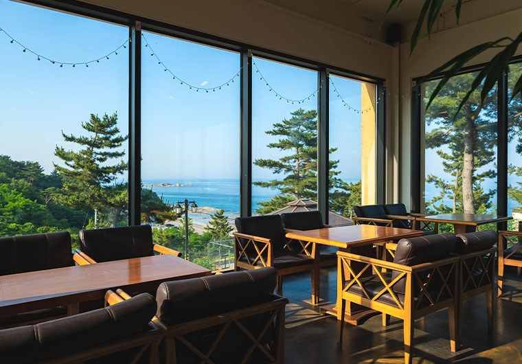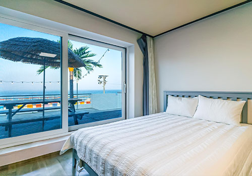 탁 트인 바다 전망이 객실 창밖에 펼쳐집니다.